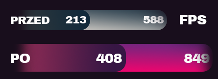 Efekt: 50-200% więcej stabilnych FPS, 90% mniej lagów i freezów